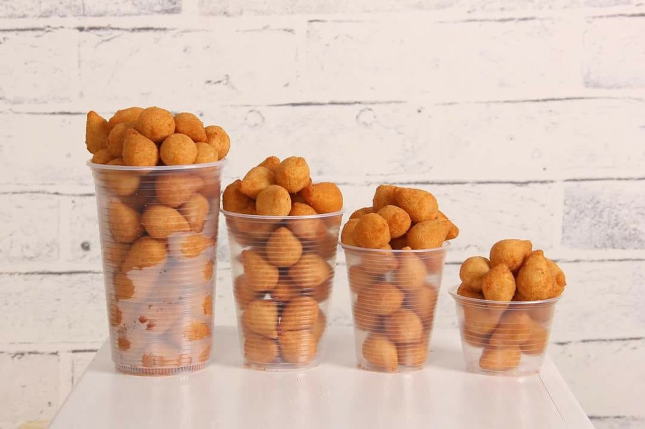 Salgado de Mandioca (qtde cento)Massa leve e macia de mandioca com recheio cremoso e sabor irresistível.R$ 100,00